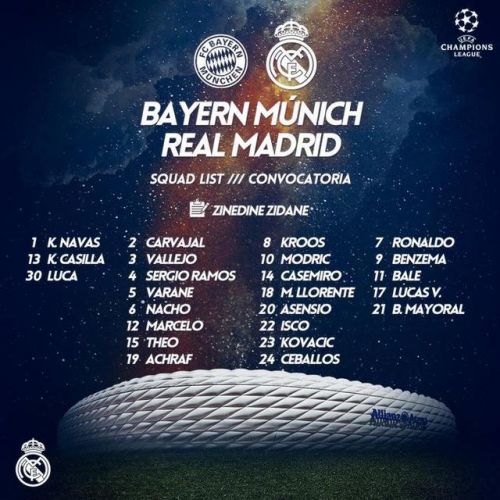 欧冠半决赛首回合皇马对阵拜仁大名单:纳乔回归