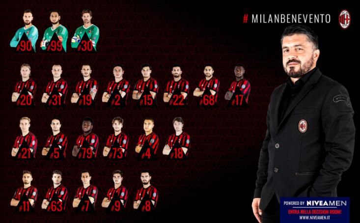 AC米兰迎战贝内文托大名单:恰尔汗奥卢伤缺
