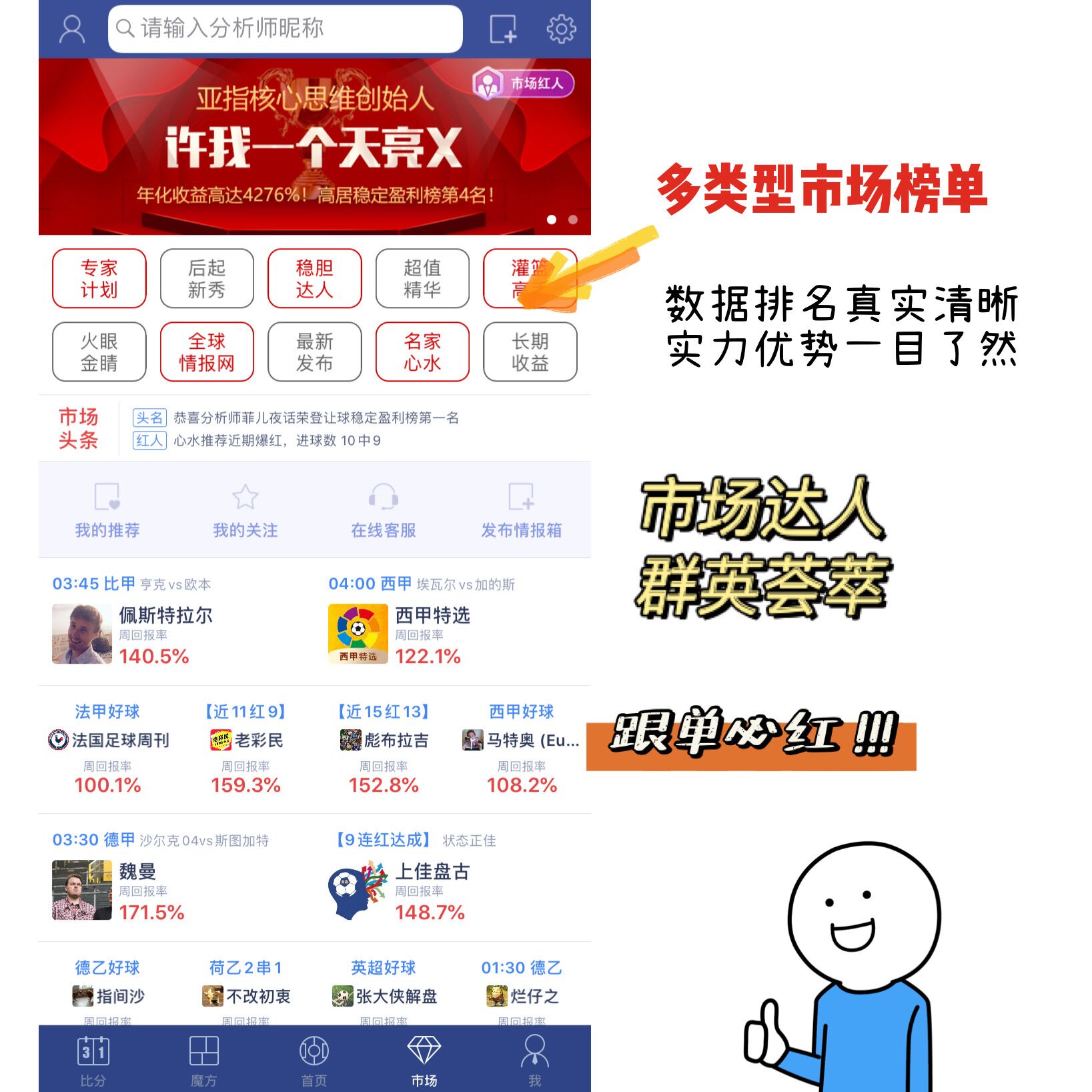 <市场>专栏一直是魔方的金牌板块,诸位市场红人的战绩数据清晰可见一目了然,超高回报率指引魔友顺利通向收米之路!
