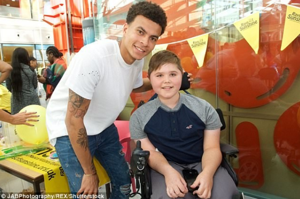 JRS直播10月14日讯 近日,热刺球星、同时也是Rays of Sunshine慈善机构大使的阿里来到了伦敦埃维莉娜儿童医院看望患病儿童。