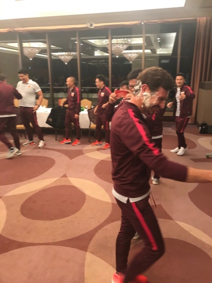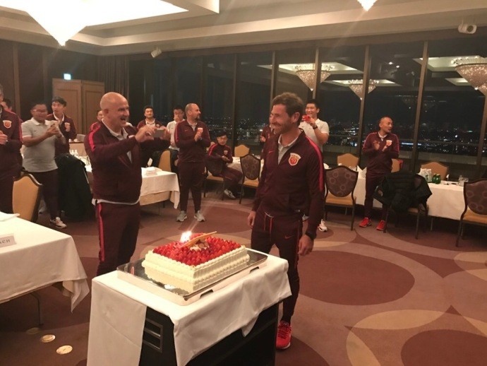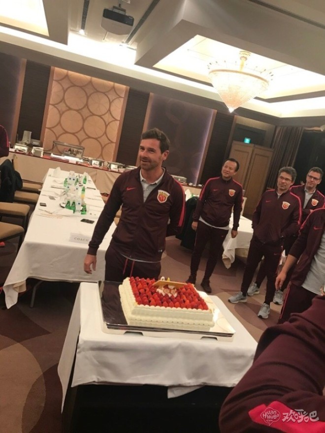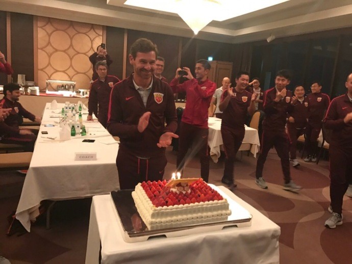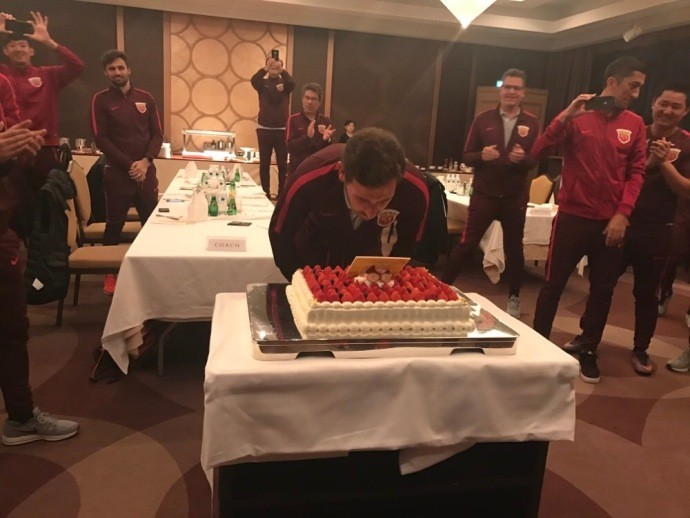 上海上港全队在日本为主帅博阿斯庆祝40岁生日