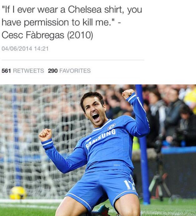 2010年,法布雷加斯:“如果我穿切尔西球衣,那你可以杀了我。”