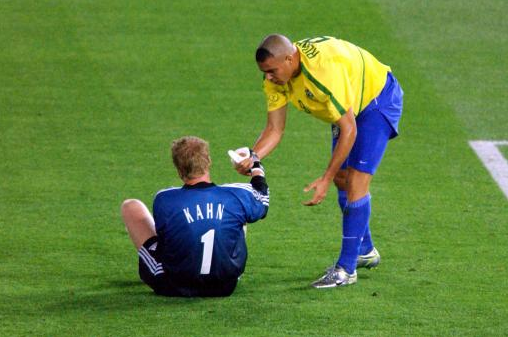 令人惊讶的是,在本届决赛前巴西和德国竟从未在世界杯决赛圈相遇。决赛中罗纳尔多包办两粒进球,巴西轻松获胜,第一球是捡了卡恩扑救远射脱手的漏,卡恩此前很少犯这样的错误;第二球,里瓦尔多用难以预测的假动作骗过了德国人的防守,给罗纳尔多创造了射门机会。