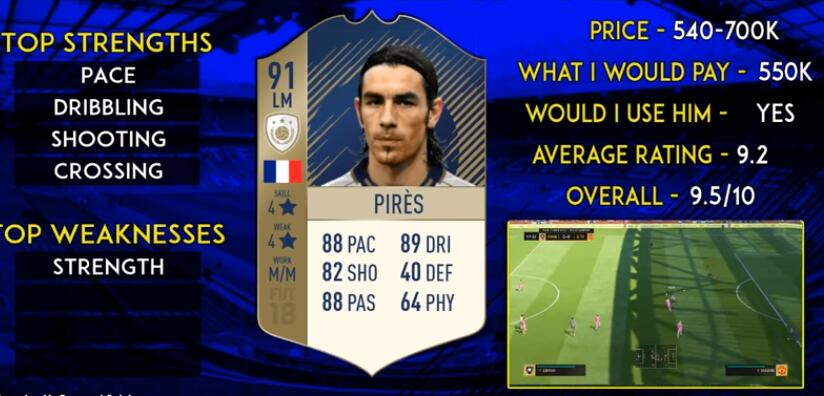 相信资深法国球迷一定对皮雷情有独钟。独特的鸭子步伐,诡异的传球路线以及机敏的跑位都令人印象深刻。如今FIFA18 UT高配皮雷在今天悄然上线,这张卡是否值得做,使用效果如何呢?