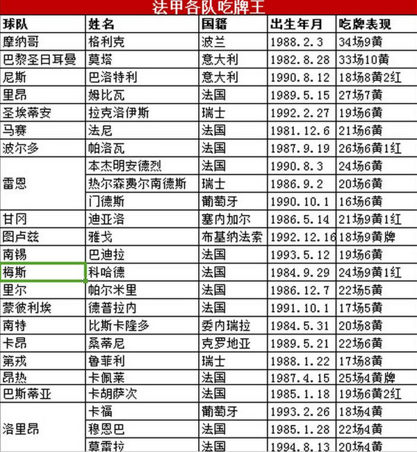 看了很多进球助攻数据,感觉要换个口味,每个队既然有那么几个吃饼送饼能力超强的,那还有就是吃红黄宝石(红黄牌)能力很强的。