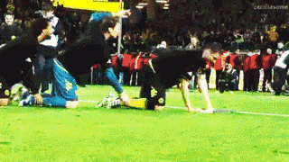 除了滑跪庆祝外,足球场上的奇葩庆祝也不在少数,比如: