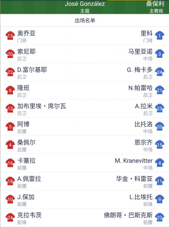 双方首发