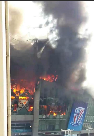 据多家上海媒体报道,上海绿地申花队主场虹口足球场今天早晨燃起大火,火势十分凶猛,并已经蔓延至球场顶部,部分房顶已被烧黑,目前并无人员伤亡报道。