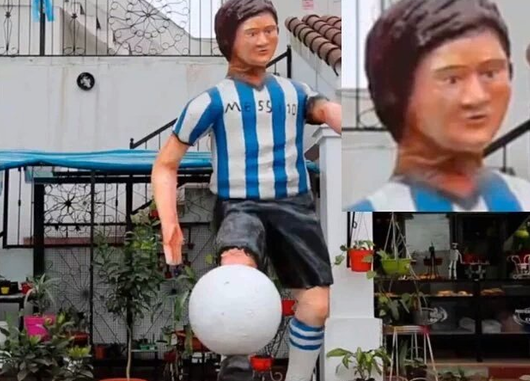 上图梅球王雕像的设立是为了在他宣布退出国家队之后挽留他的,不过相信在看了这雕像后,梅西一定会选择远远躲开国家队的。