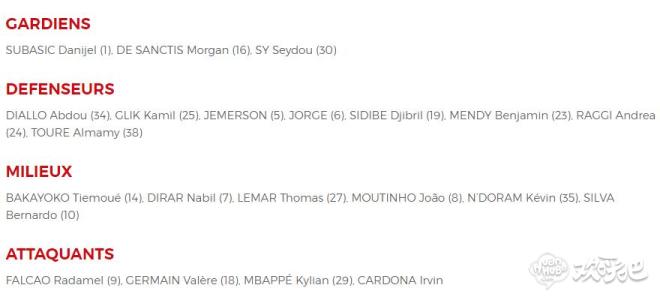 前锋:法尔考,热尔曼,姆巴佩,卡多纳